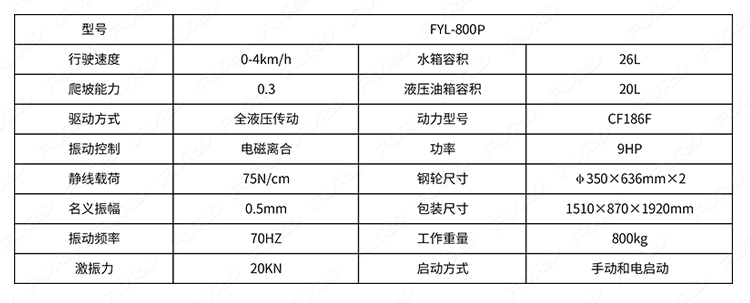 FYL-800是800kg液壓轉(zhuǎn)向壓路機,采用重型變量柱塞泵,液壓馬達驅(qū)動變速行走,電磁離合器振動。